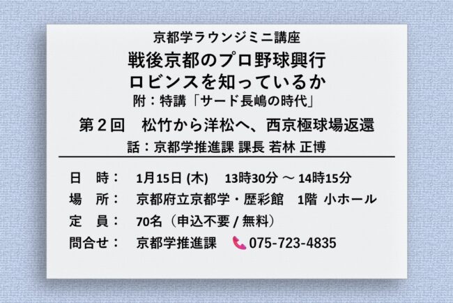 【1月15日】京都学ラウンジミニ講座「戦後京都のプロ野球興行 ロビンスを知っているか 附:特講『サード長嶋の時代』」②