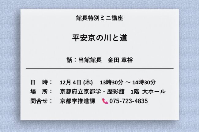 【12月4日】館長特別ミニ講座「平安京の川と道」