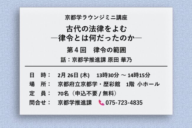 【2月26日】京都学ラウンジミニ講座「古代の法律をよむ ―律令とは何だったのか―」④