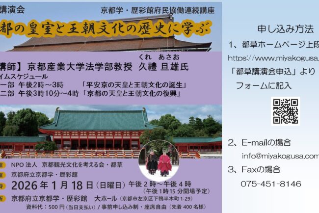 【1月18日】府民協働連続講座 都草講演会「京都の皇室と王朝文化の歴史に学ぶ」