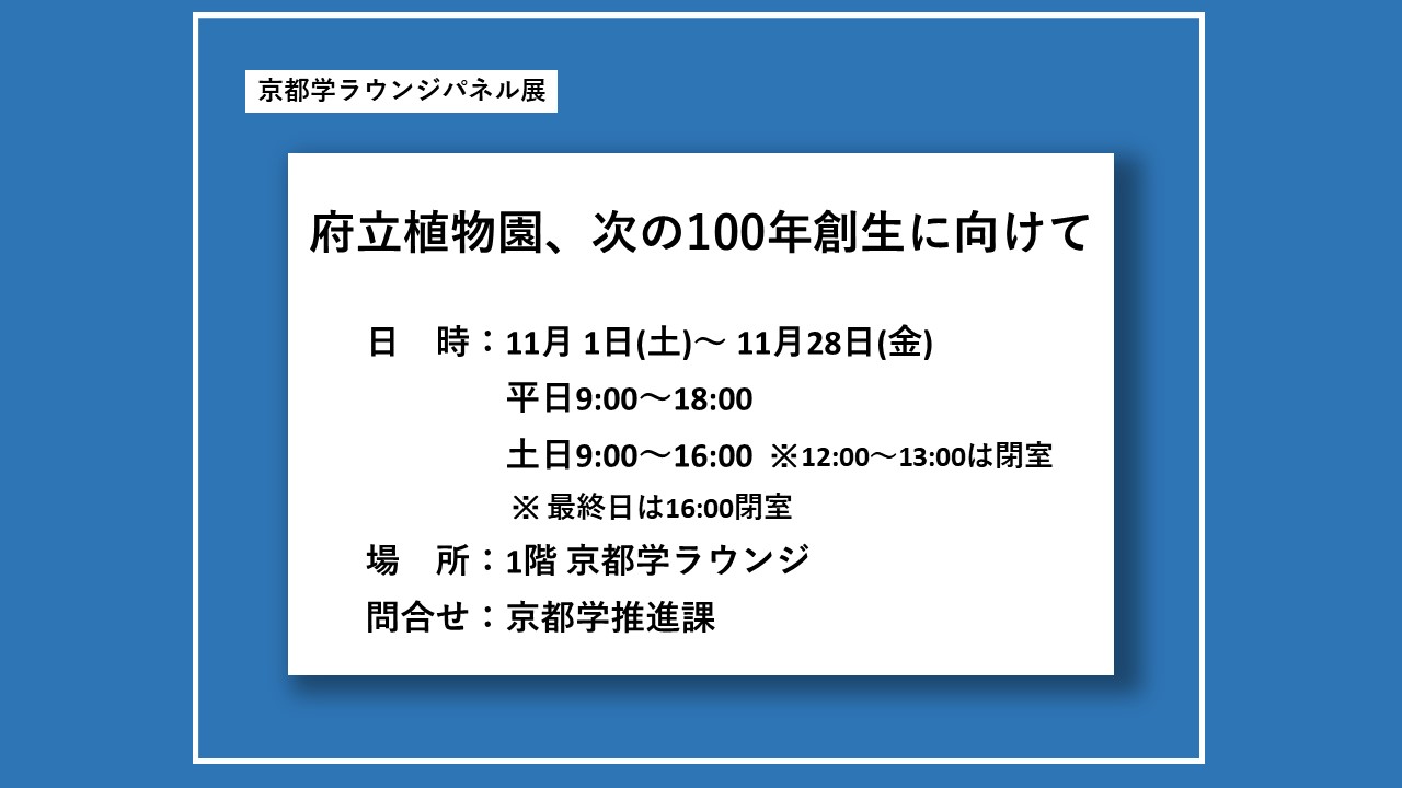 【11月1日~11月28日】京都学ラウンジパネル展「府立植物園、次の100年創生に向けて」