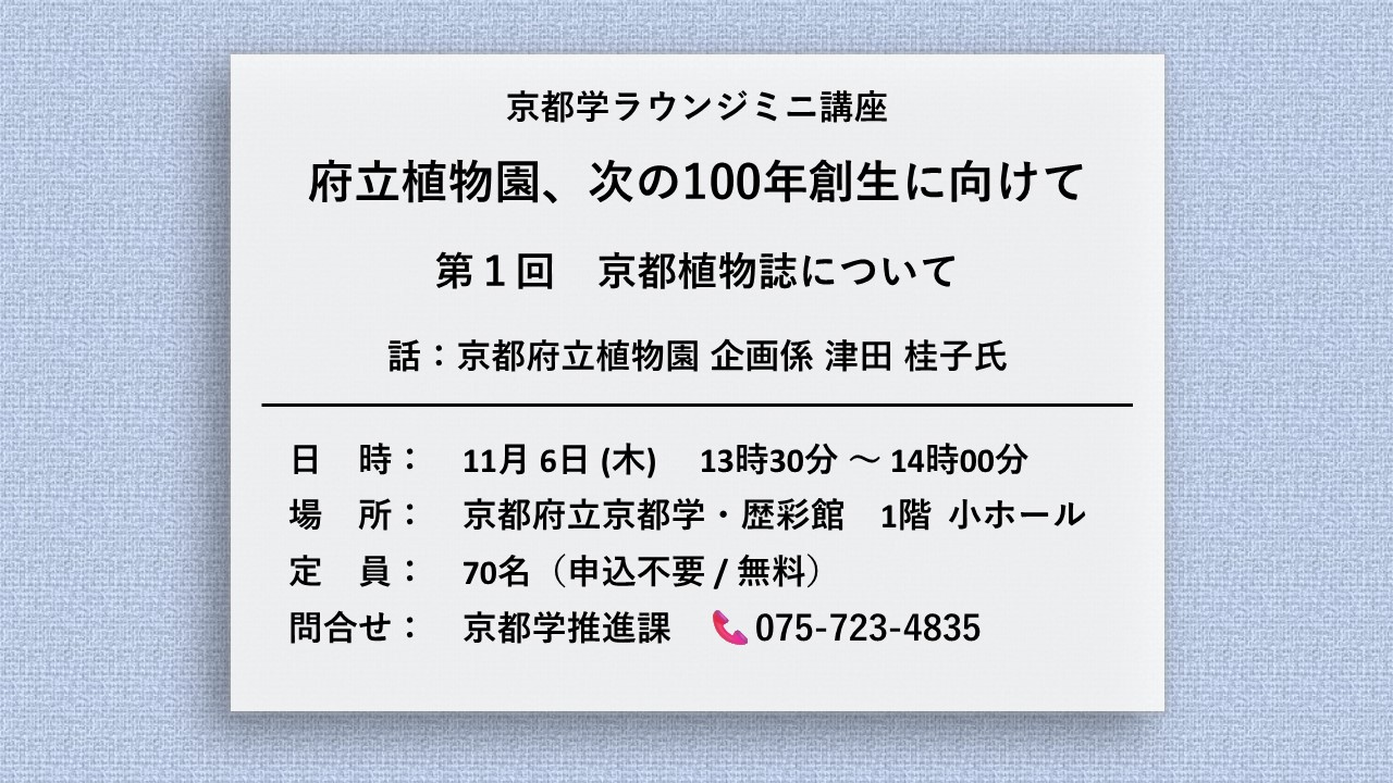 【11月6日】京都学ラウンジミニ講座「府立植物園、次の100年創生に向けて」①
