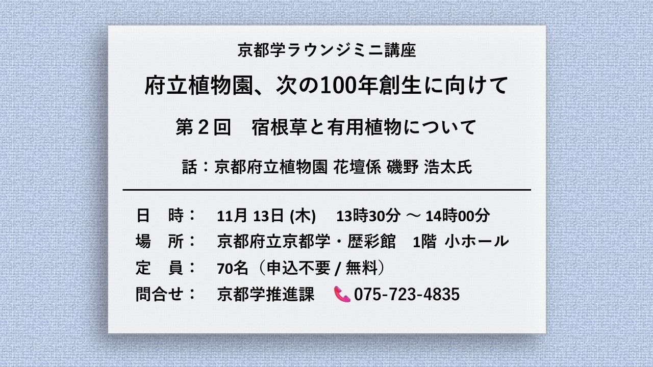【11月13日】京都学ラウンジミニ講座「府立植物園、次の100年創生に向けて」②