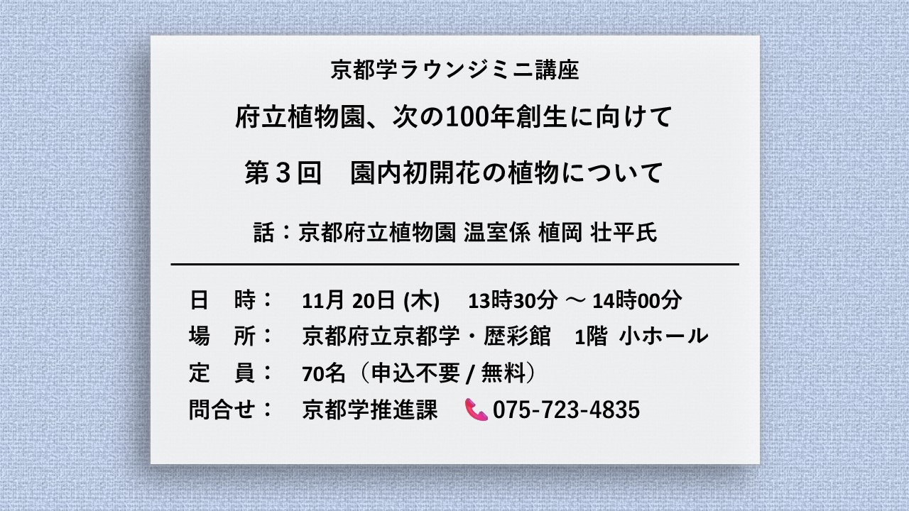 【11月20日】京都学ラウンジミニ講座「府立植物園、次の100年創生に向けて」③