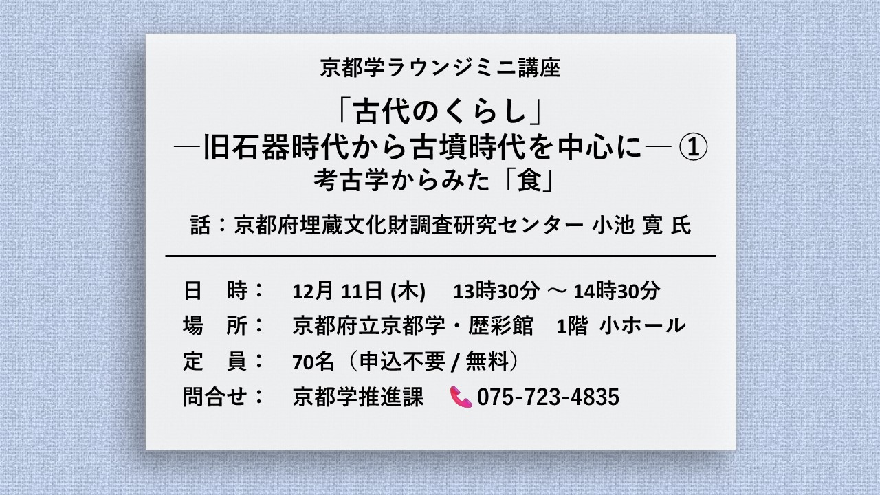 【12月11日】京都学ラウンジミニ講座「古代のくらし―旧石器時代から古墳時代を中心に―」①