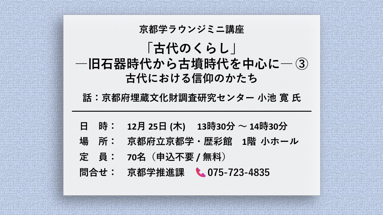 12月11日 京都学ラウンジミニ講座「古代のくらし―旧石器時代から古墳時代を中心に―」①