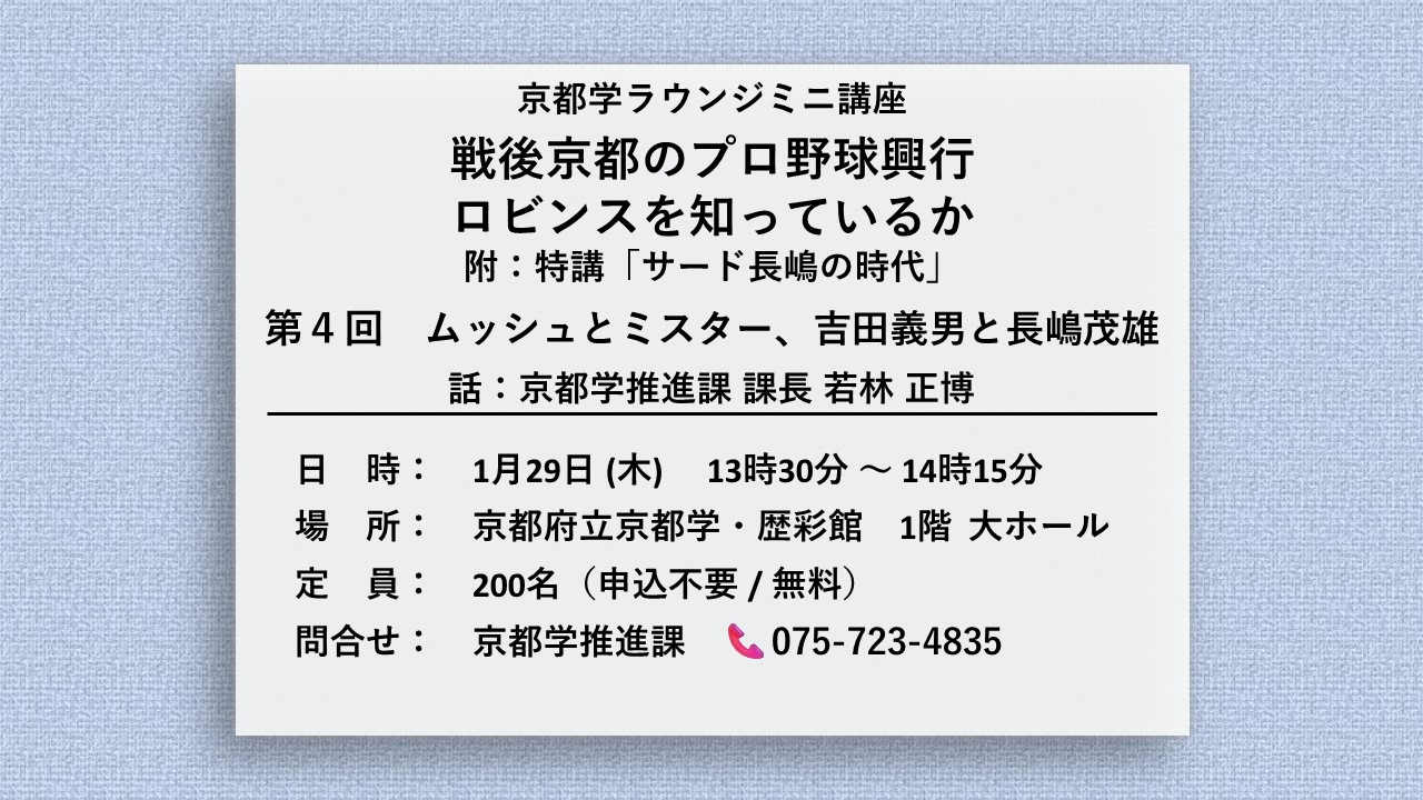 【1月29日】京都学ラウンジミニ講座「戦後京都のプロ野球興行 ロビンスを知っているか 附:特講『サード長嶋の時代』」④