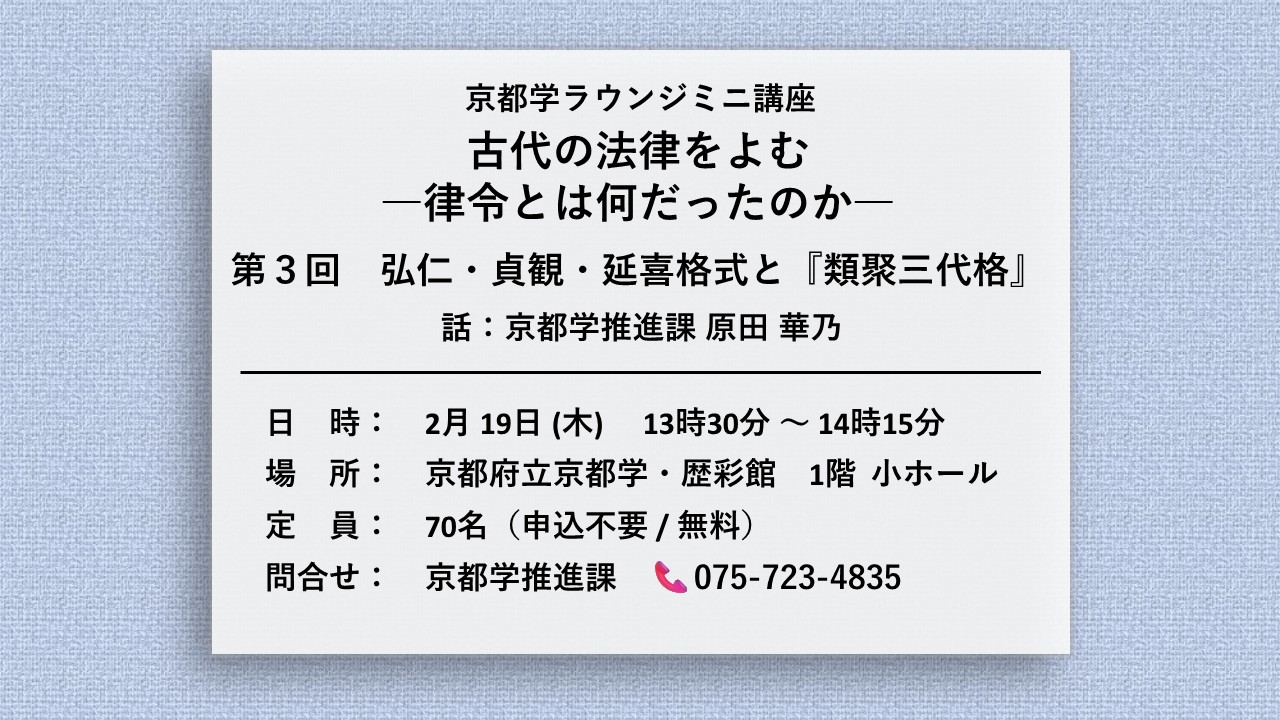 【2月19日】京都学ラウンジミニ講座「古代の法律をよむ ―律令とは何だったのか―」③