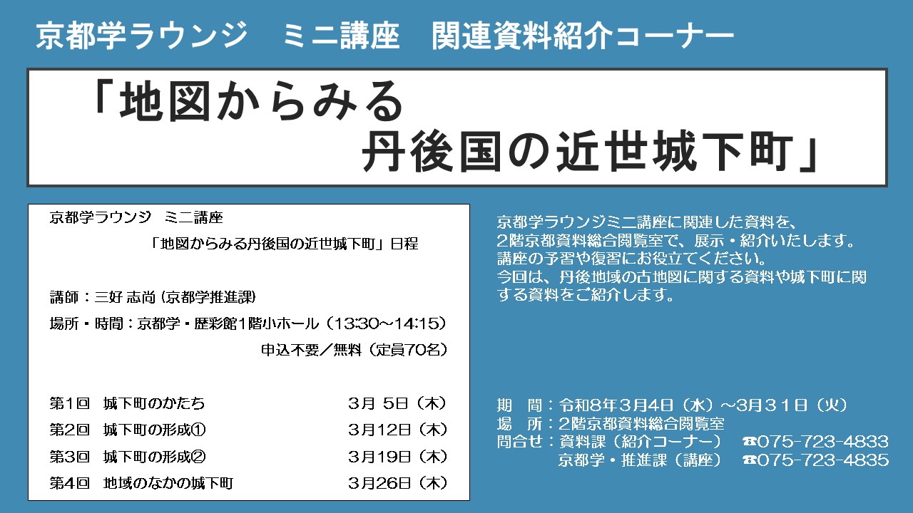 【3月4日~3月31日】京都学ラウンジミニ講座関連 資料紹介コーナー「地図からみる丹後国の近世城下町」