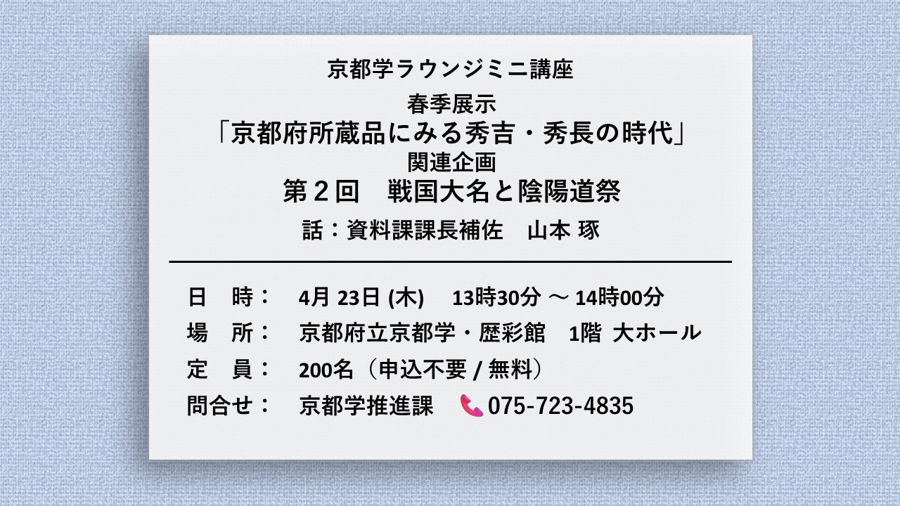 【4月23日】京都学ラウンジミニ講座「春季展示『京都府所蔵品にみる秀吉・秀長の時代」関連企画」②