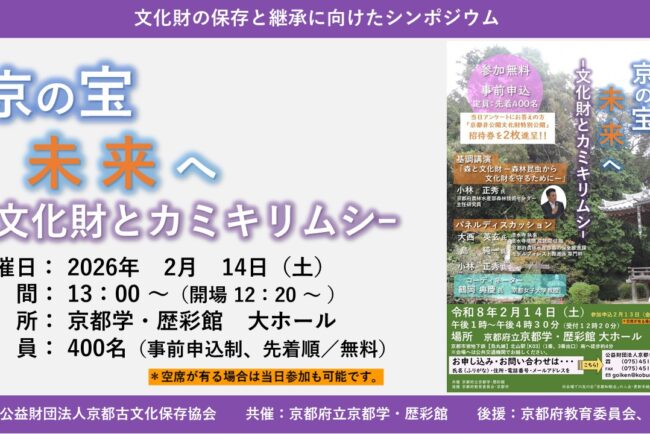 *空席が有る場合は当日参加も可能です。参加費 無料(事前申込制) 申込方法 京都古文化保存協会事務局まで