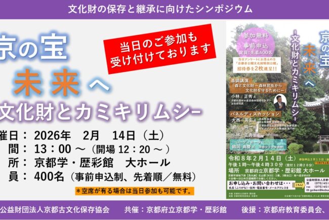 *空席が有る場合は当日参加も可能です。参加費 無料(事前申込制) 申込方法 京都古文化保存協会事務局まで